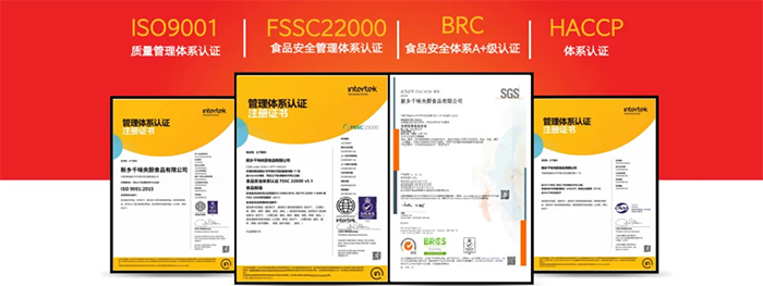 成立至今,千味央廚已通過BRCGS食品安全全球標準A+級認證、FSSC22000食品安全管理體系認證、ISO9001質量管理體系認證、HACCP體系認證。千味央廚制訂并執行的所有產品質量檢驗標準,均高于行業平均水平,在行業內起到樹立高標準的作用。